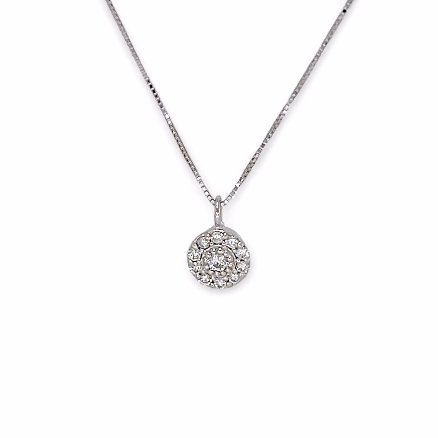 Girocollo punto luce di diamanti in oro bianco 750% SETA Diamante centrale 0,23 ct colore F purezza VS1, Diamanti di contorno 0,10 ct colore F purezza VS1