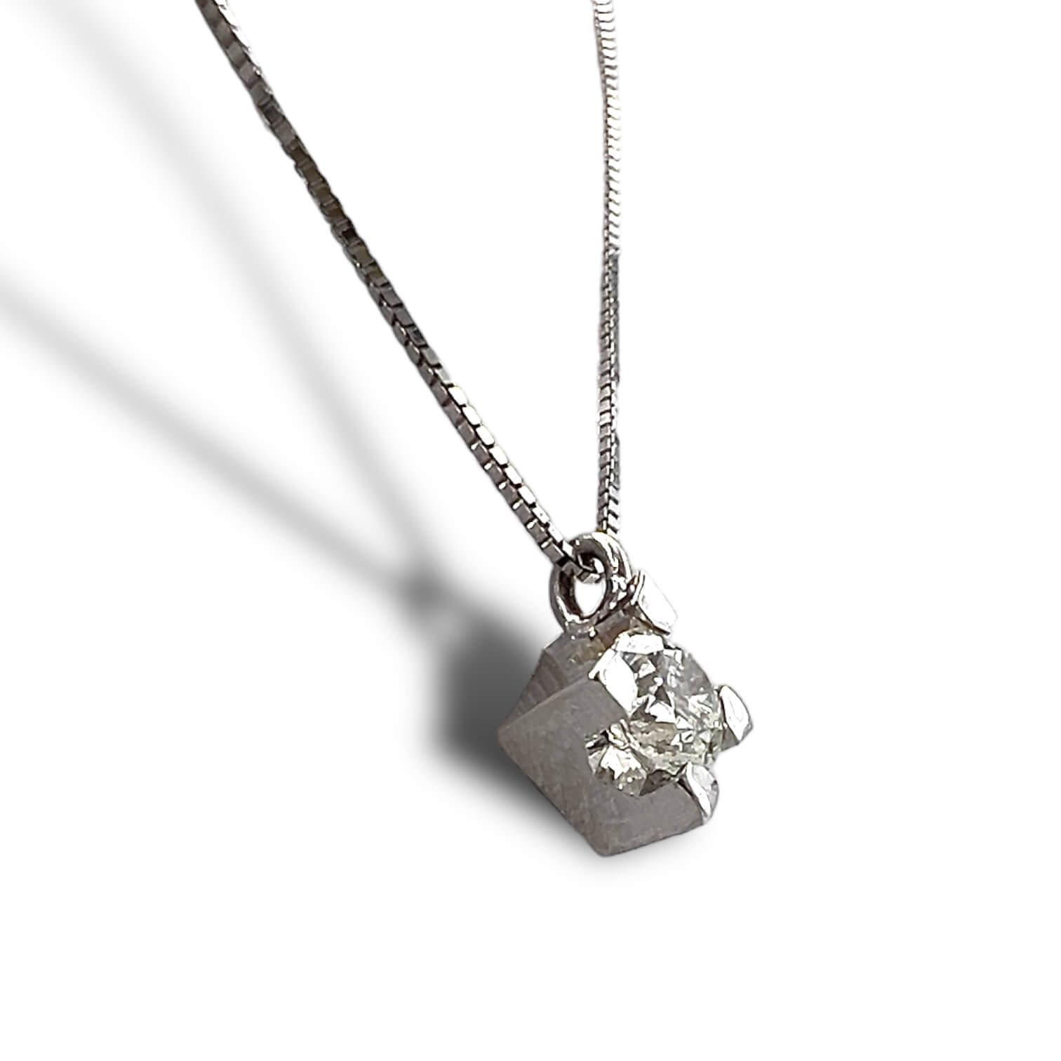 Girocollo Punto luce Cipolla dal 1950 Gioiellieri, lavorazione artigianale, Montatura in oro bianco 750% 18 kt Diamante caratura 0,40 ct colore F purezza VS1.Catenina girocollo maglia veneziana oro 750% 18 kt