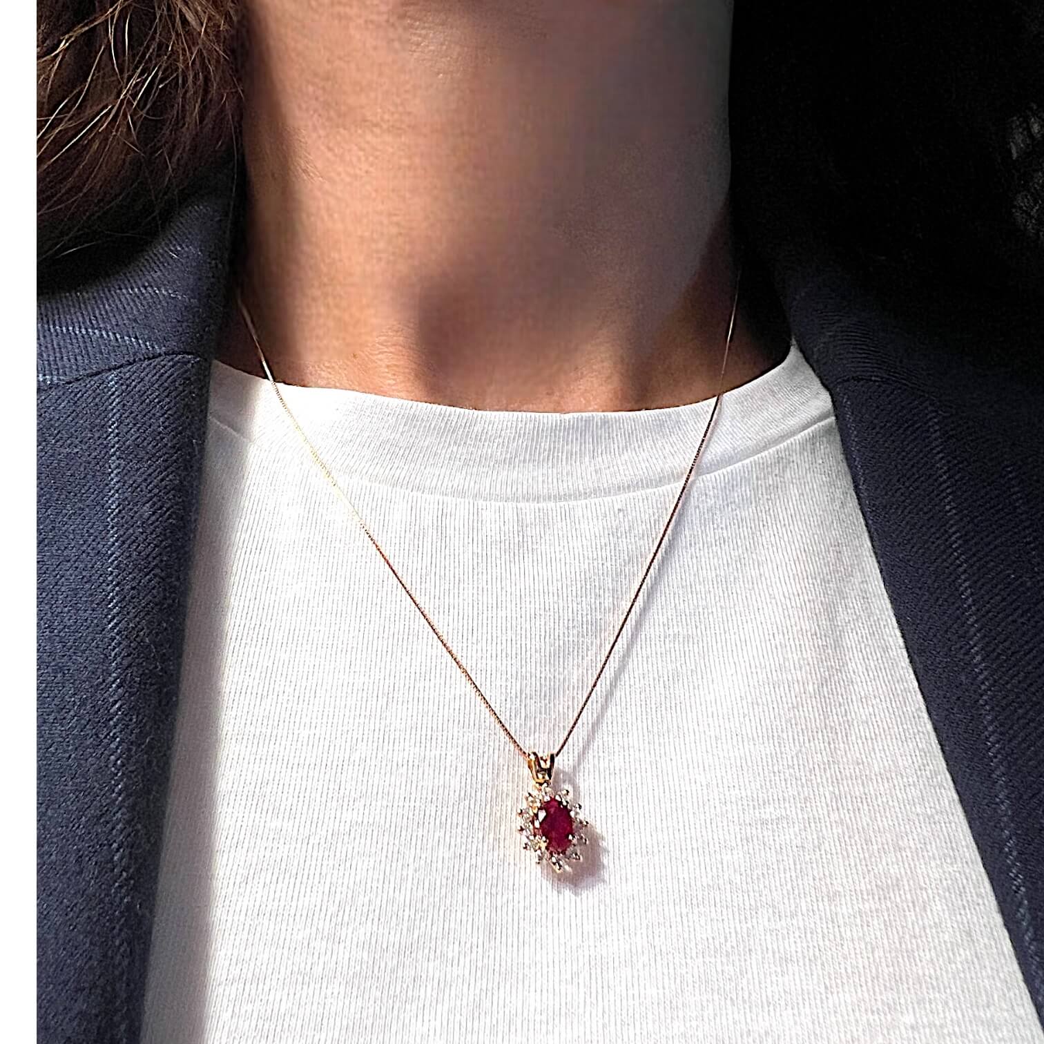 Girocollo con rubino e diamanti Cipolla dal 1950 Gioielli COLLEZIONE BON TON, lavorazione artigianale; Montatura in oro rosa 750% 18 kt, Diamanti taglio brillante 0,23 ct colore F purezza VS2, Rubino taglio ovale peso 0,86 ct