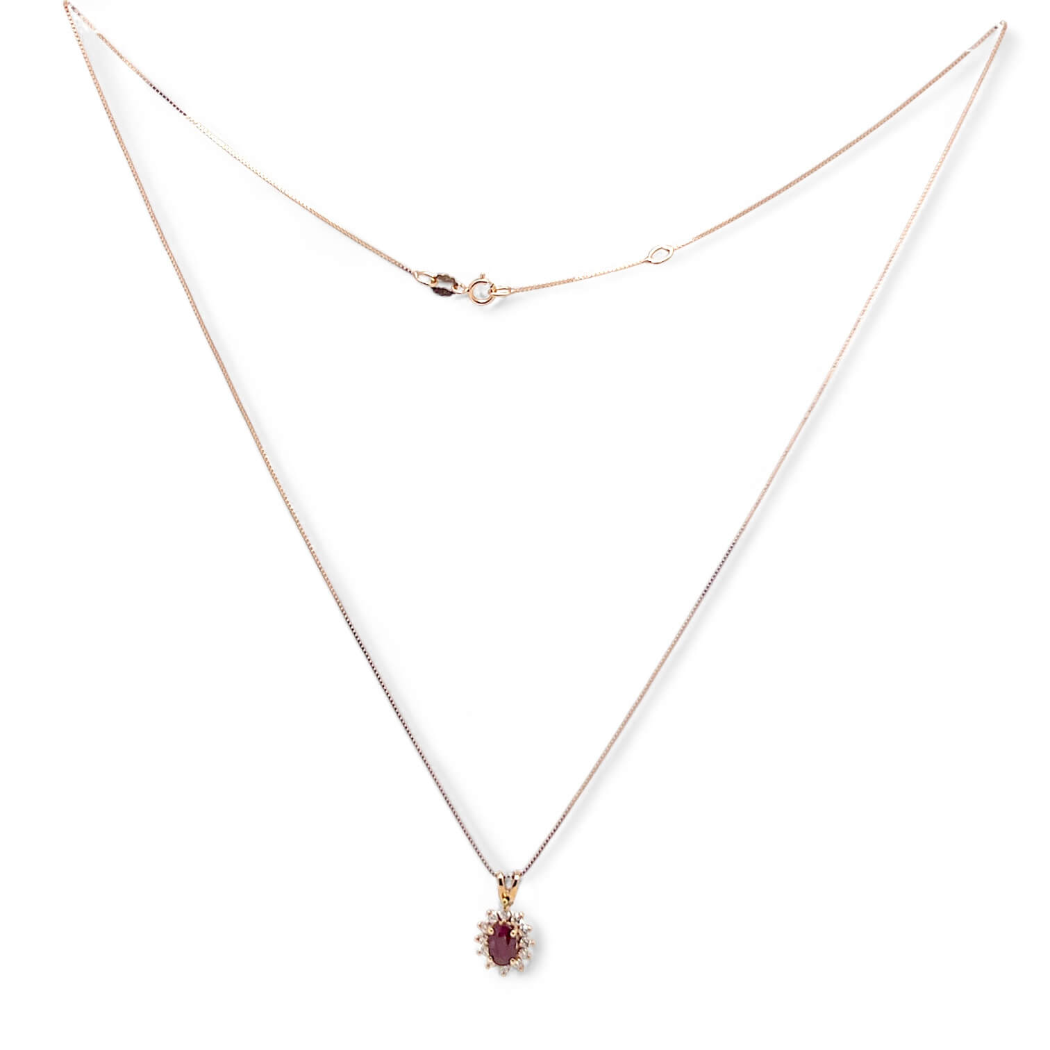 Girocollo con rubino e diamanti in oro rosa 750% 18 kt BON TON, Diamanti 0,23 ct colore F purezza VS2, Rubino peso 0,86 ct CIPOLLA DAL 1950 GIOIELLI ART. CD869