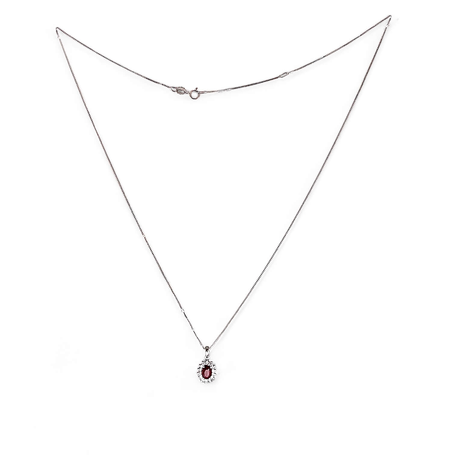 Girocollo con rubino e diamanti in oro bianco 750% BON TON , Diamanti 0,12 ct colore F purezza VS1, Rubino 0,52 ct CIPOLLA DAL 1950 GIOIELLI Art.CD846