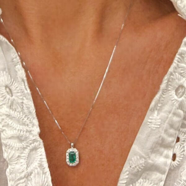 Girocollo con smeraldo e diamanti in oro bianco 750% 18 kt BELLE EPOQUE, Diamanti peso 0,15 Ct colore F purezza VS2 smeraldo peso 0,45 ct CIPOLLA DAL 1950 GIOIELLI ART. CD830