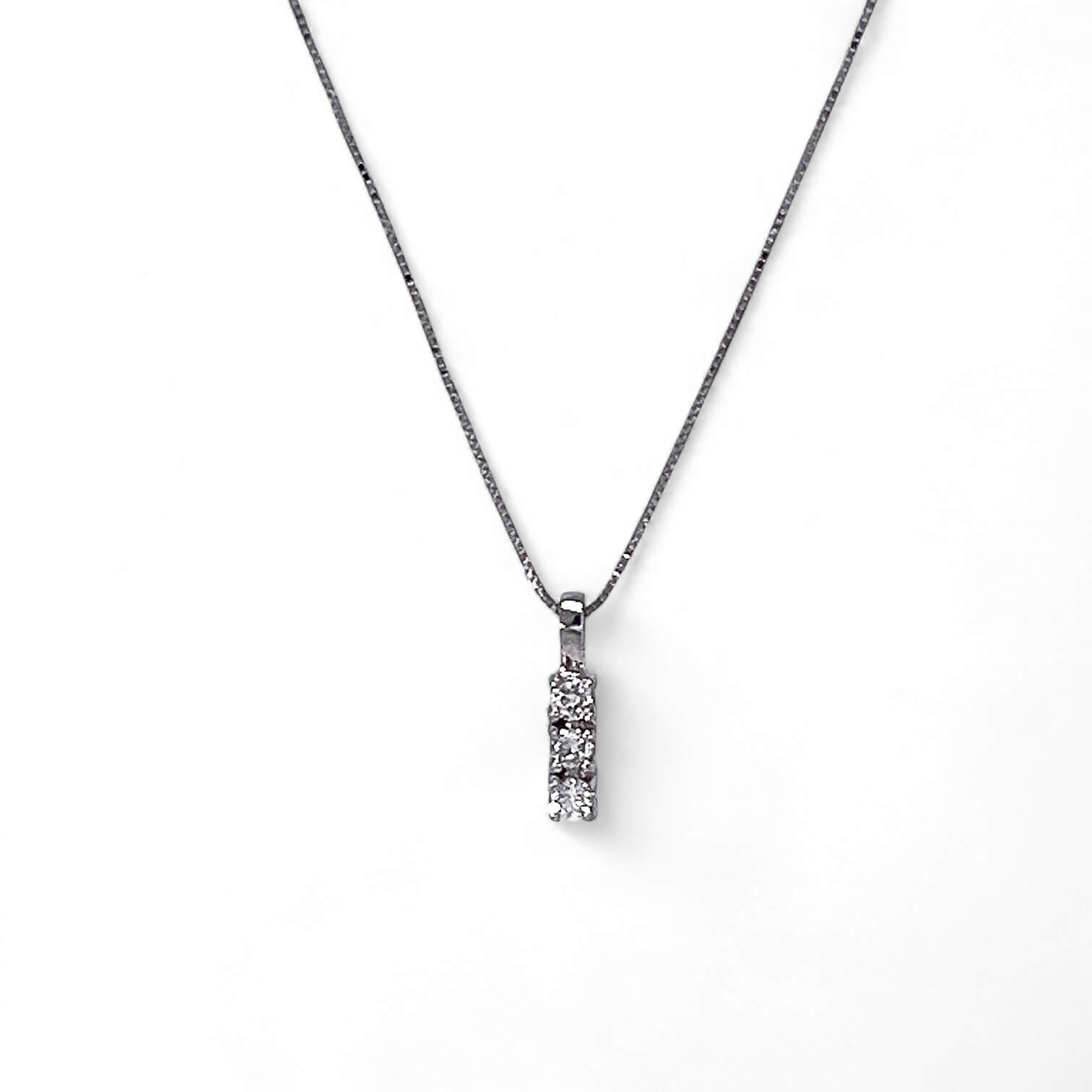 Pendente trilogy di diamanti Cipolla dal 1950 Gioiellieri COLLEZIONE SOGNO, lavorazione artigianale; Montatura in oro bianco 750% 18 kt, Diamanti taglio brillante 0,17 Ct colore F purezza SI1, catenina girocollo in oro bianco 750% 18 kt maglia veneziana