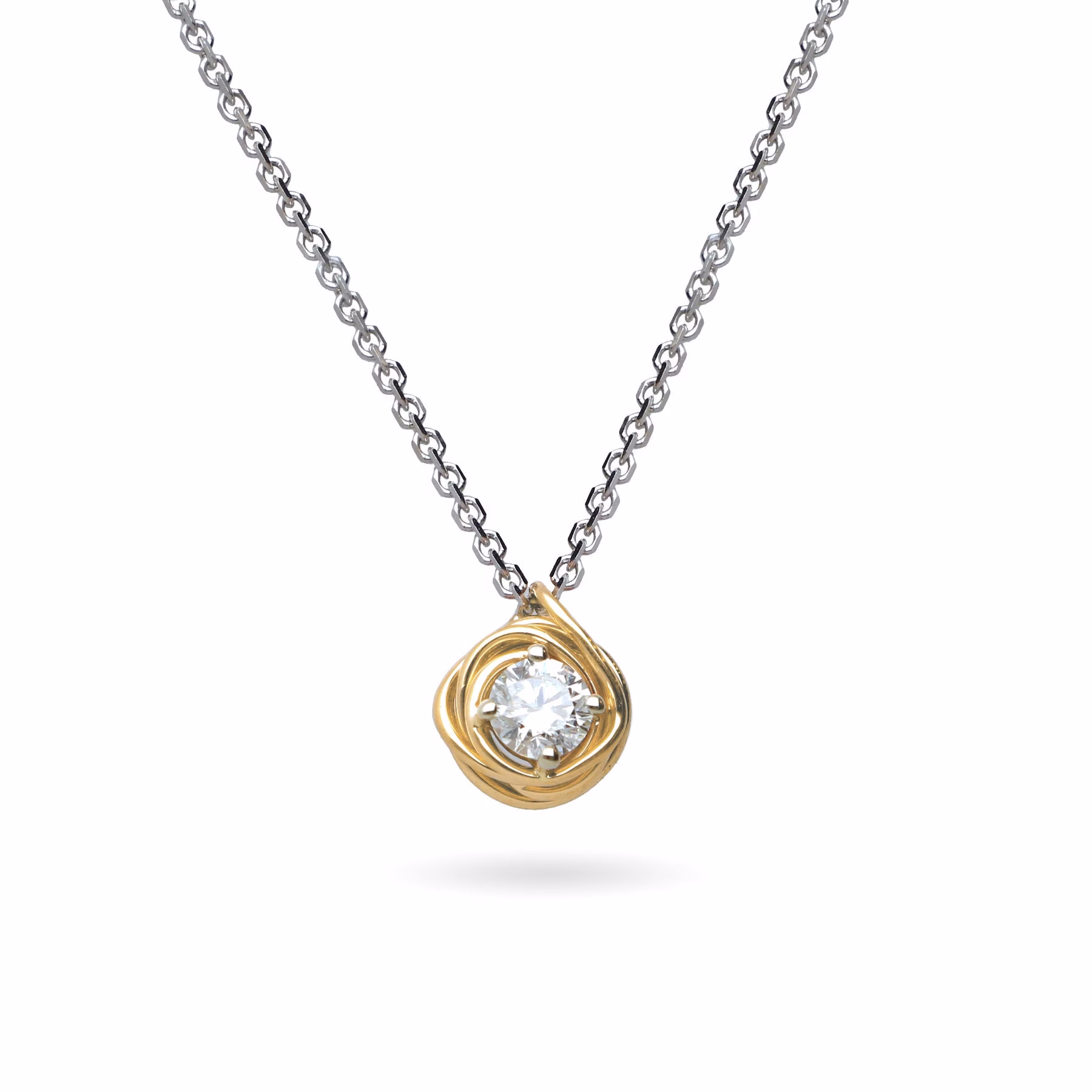 Punto Luce Filodellavita Solitario 6 Fili in Oro Giallo 9kt con Castone in Oro Giallo 9kt – 45 cm. con Diamante Colorless Taglio Round Brilliant da 0,08ct